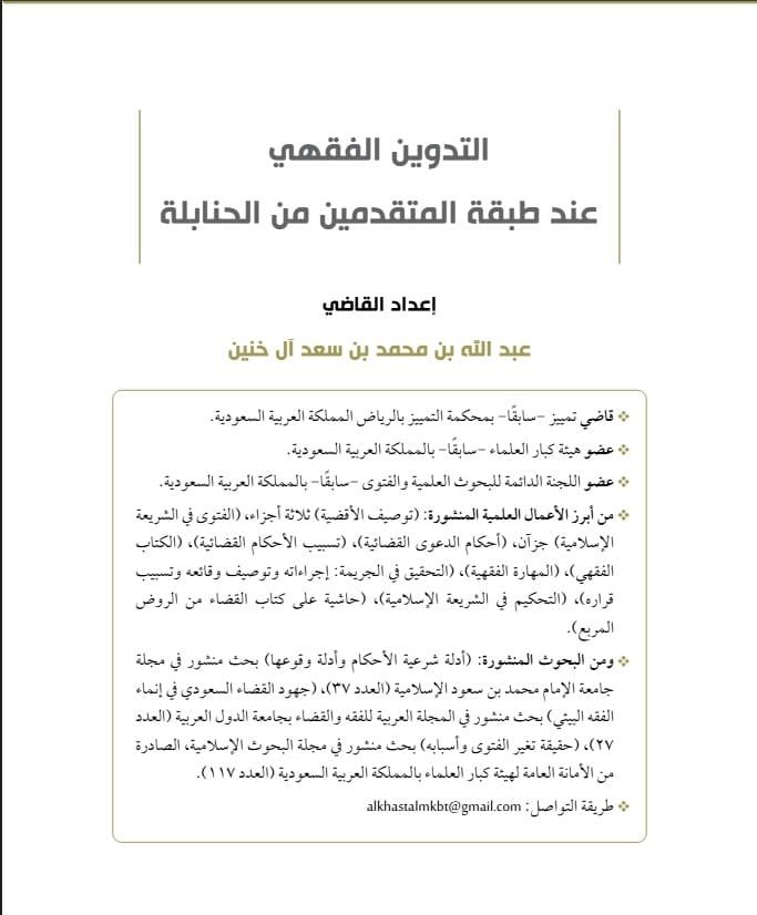 التدوينُ الفقهيُّ عند طبقة المتقدِّمين من الحنابلة